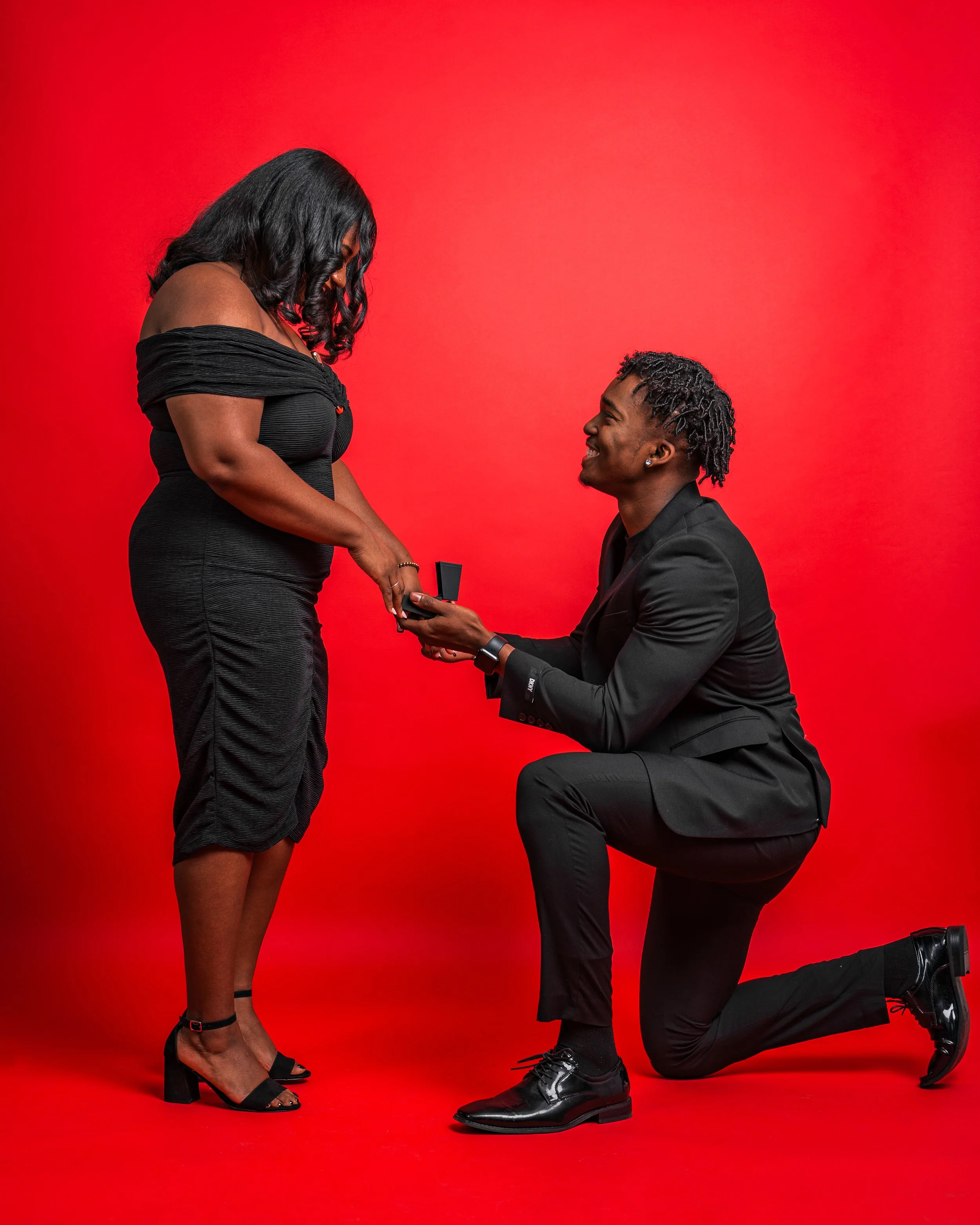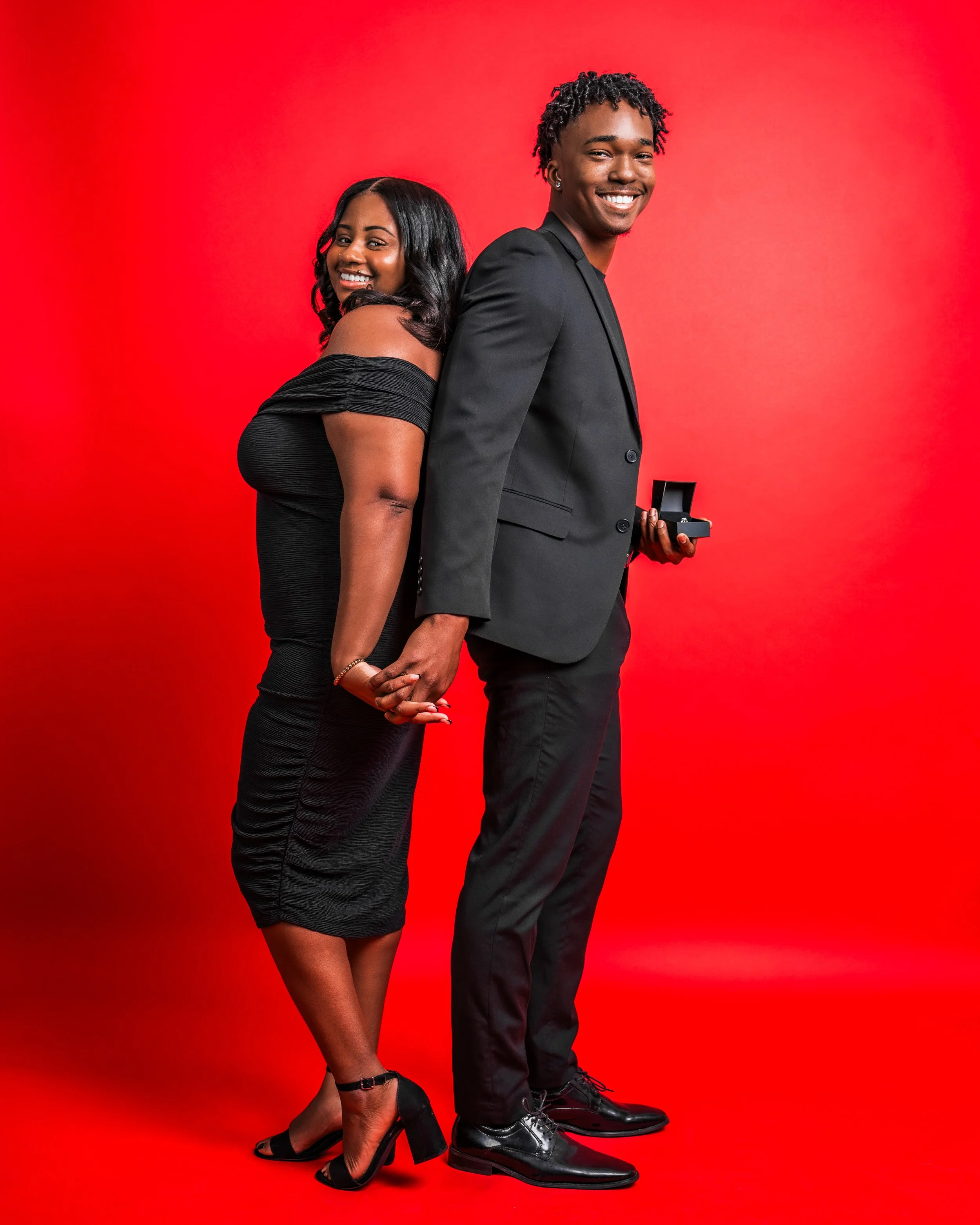 The setup was simple but intentional: bold black and red tones, clean studio energy, outfits coordinated to perfection. From the start, Shatria thought they were just capturing portraits. She laughed through poses, leaned into the vibe, and trusted the process. She had no idea what was about to happen.